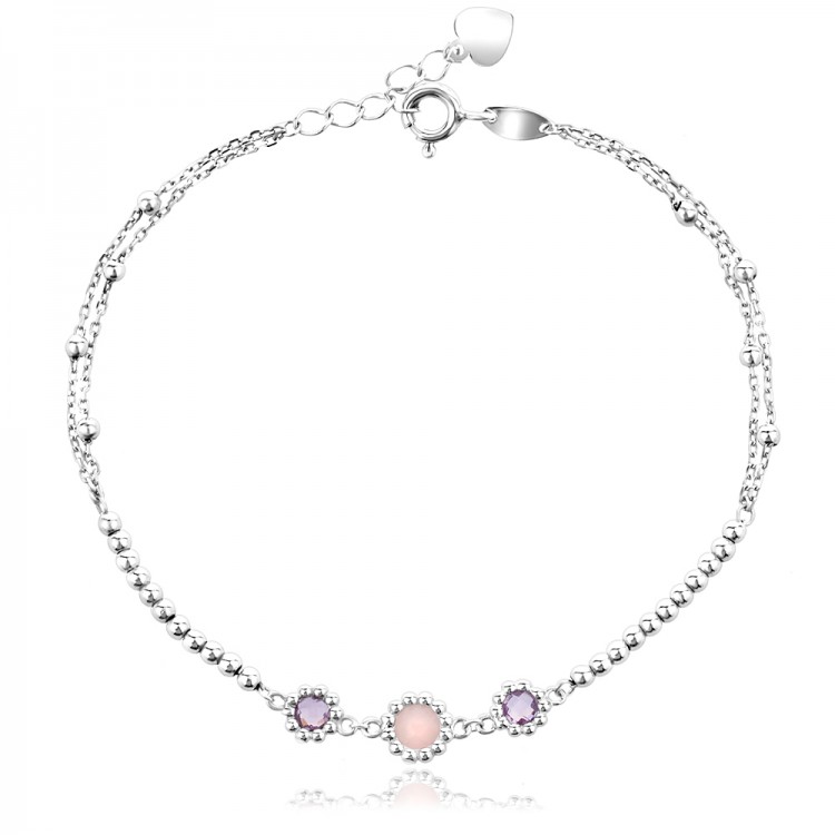 Камъни: Централен розов и странични лилави цирконии в прецизен обков