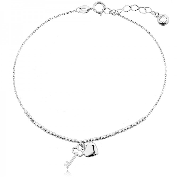Cleo е изящна гривна, която съчетава символиката на ключето и сърцето в един неразделен дизайн. Моделът е богато декориран с елементи с диамантиран ефект около основните мотиви и по верижката, които улавят и пречупват светлината от всеки ъгъл.