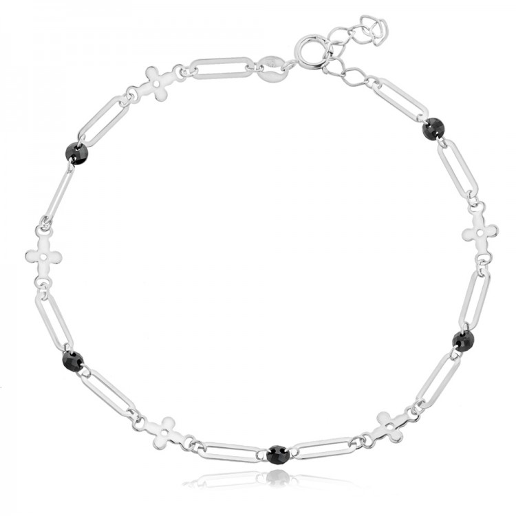 Сребърна гривна с ефирен дизайн, акцентиран от естествен черен оникс. Прецизната изработка и ритмичното редуване на детайлите създават балансиран контраст, който придава на бижуто характер и дълбочина.