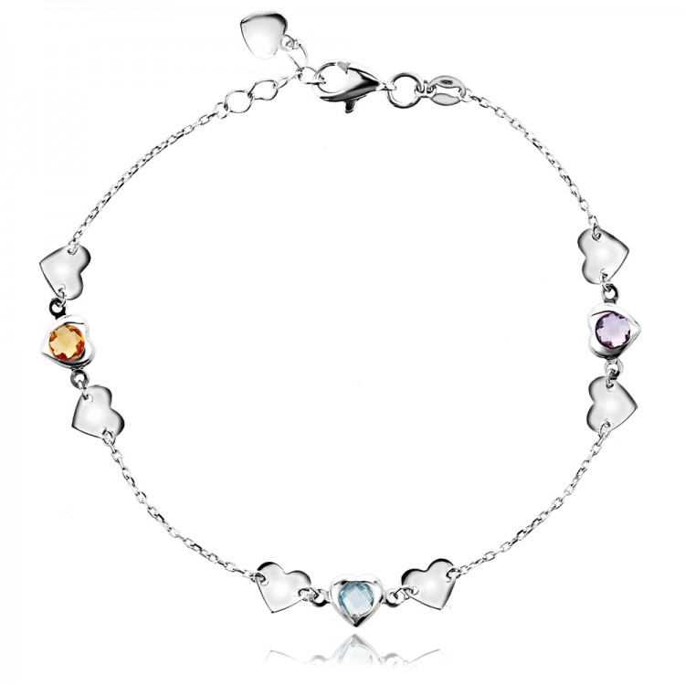 Гривна Leila е феерия от романтика и жизнерадостни цветове. Дизайнът впечатлява с ритмичното редуване на сребърни сърца с нежни елементи, инкрустирани с камъни в пастелни нюанси.