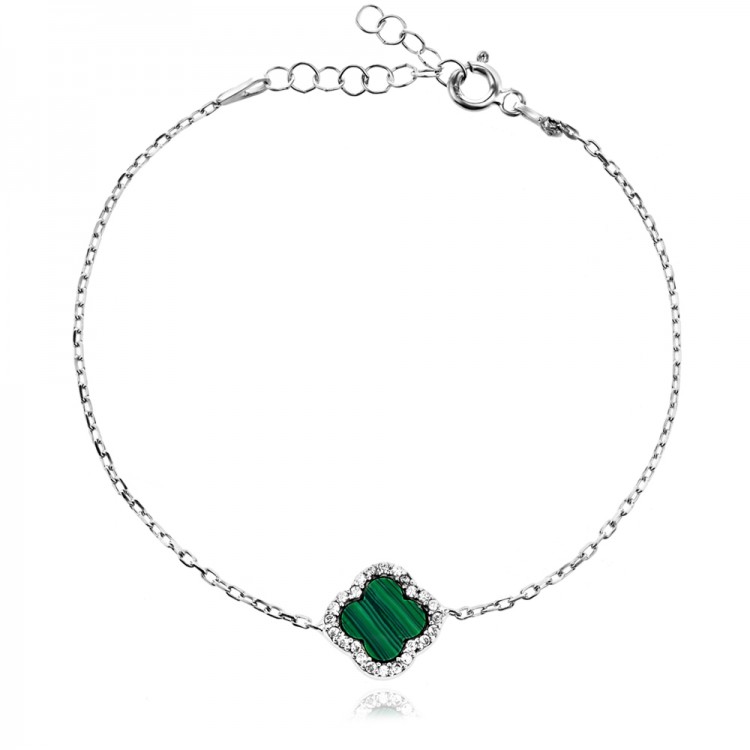 Гривна Malissa е истински шедьовър на флоралния дизайн. Сърцето на нежното цвете е инкрустирано с изящен камък по Ваш избор – сияен седеф, мистичен малахит или класически оникс. Всеки един от тези елементи е обгърнат от фина линия искрящи цирконии – камъни, които подчертават дълбочината на центъра и внасят луксозно сияние във всяко Ваше движение.