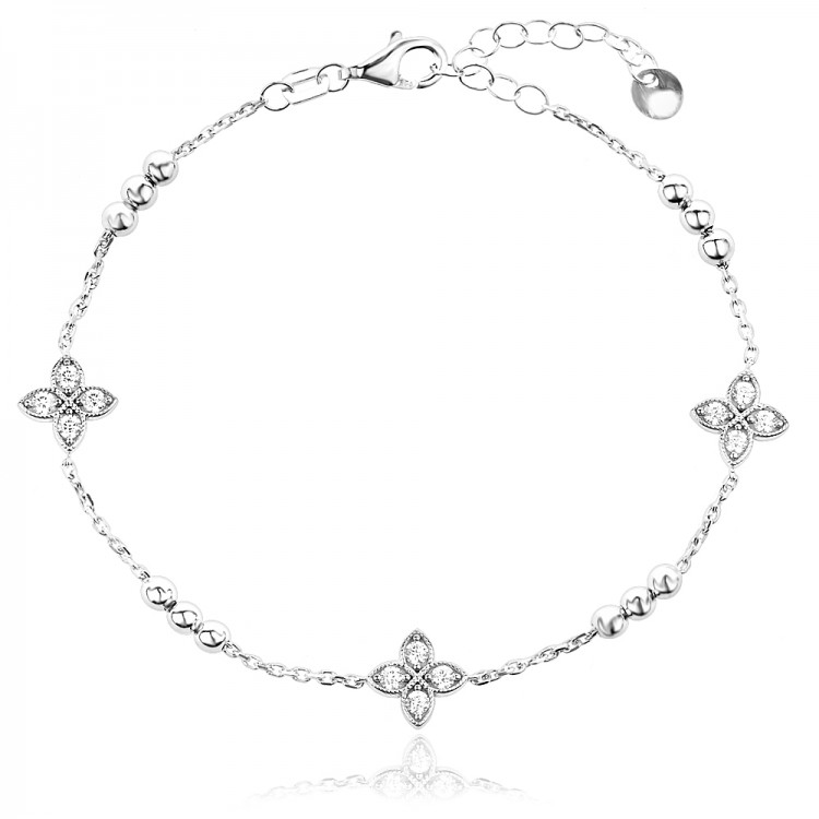 Гривна Viana е истинско тържество на женствеността и финия вкус. Дизайнът впечатлява с няколко нежни цветя, разпръснати по цялата дължина на верижката, всяко от които е прецизно инкрустирано с искрящи цирконии. Това бижу създава усещане за непреходна елегантност и дискретен лукс, които обгръщат китката Ви с изящество при всяко движение.