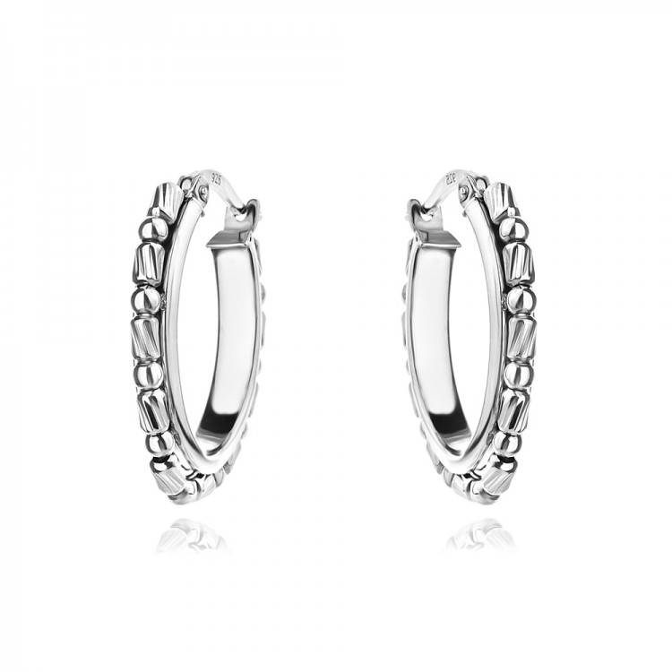 Обеци Glossy са истинско бижу за ценители, съчетаващо кралско величие и съвременен стил. Дизайнът впечатлява с прецизна симетрия и богата текстура, в която огледално полирани повърхности се срещат с майсторски изработен диамантиран ефект.