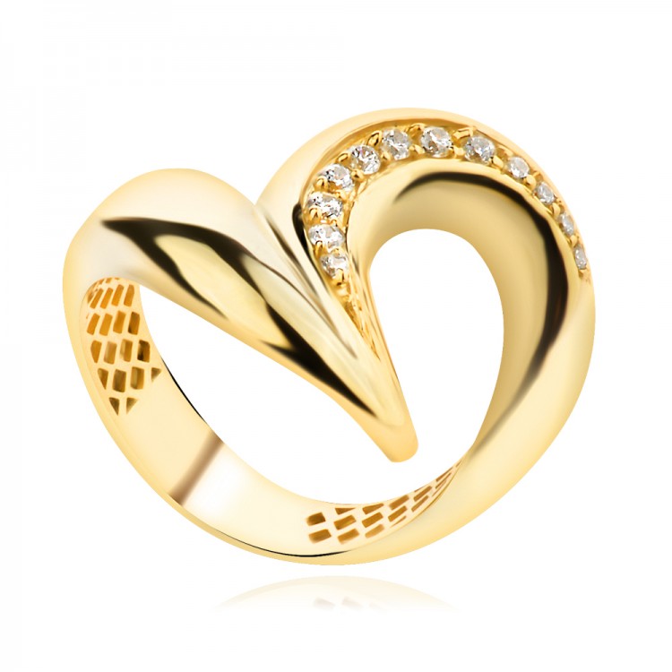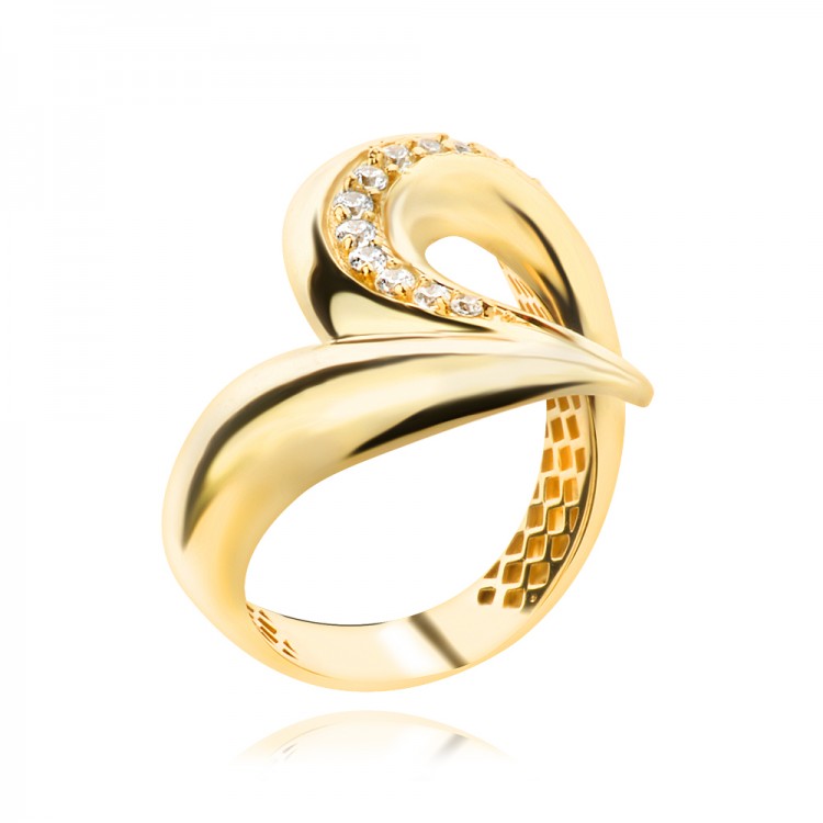 Изискан златен пръстен с впечатляващ обем и изненадващо леко усещане. Създаден чрез микрофюжън техника, той разполага с куха структура и вътрешна мрежа, съчетаващи елегантност и съвременна технология.